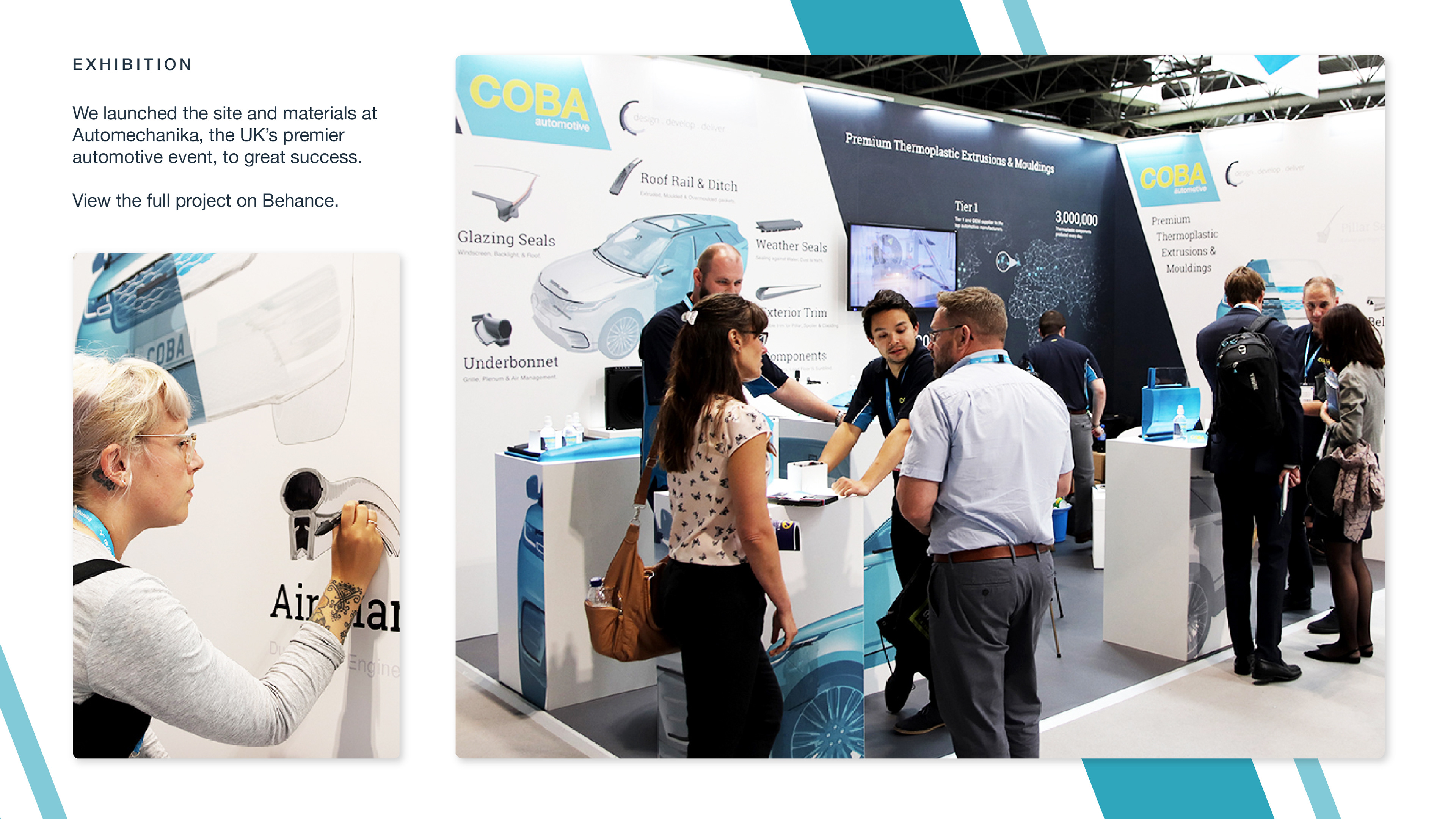 I partnered COBA Automotive in a group brand refresh. We revitalised all brand collateral including websites, brochures, packaging and exhibition designs.