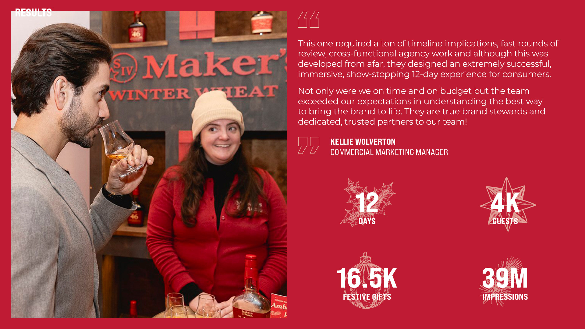They asked us to create a best-in-class festive experience to excite and engage New Yorkers and create a buzz around Maker's over the Christmas period.