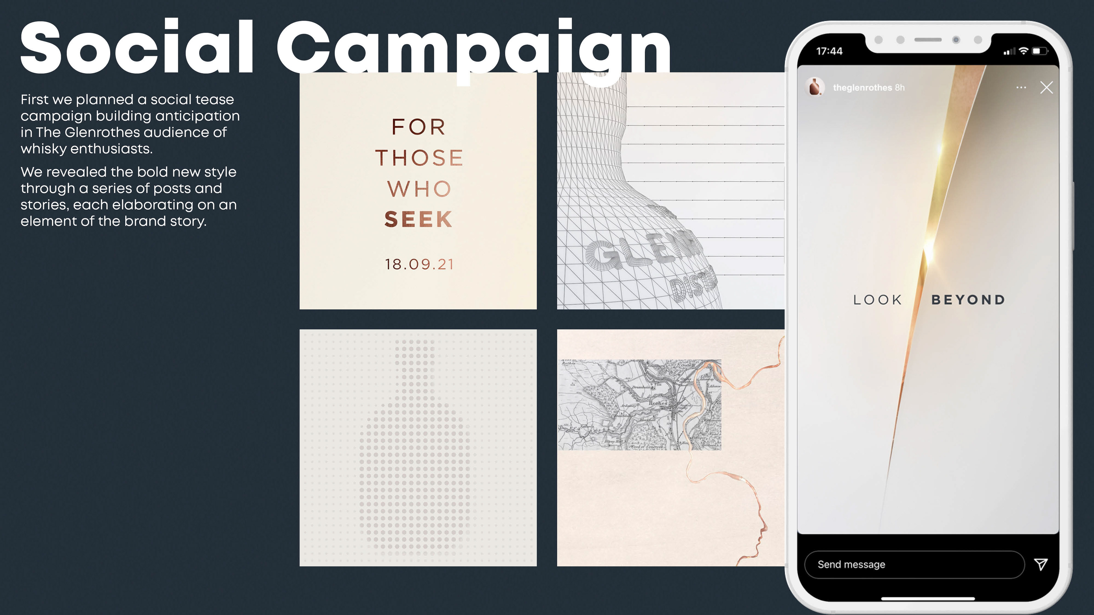 In 2021 The Glenrothes launched their new prestige positioning ‘Look Beyond’. We created an impactful launch across all their channels, including a new brand film, key art, social campaign and an updated website.